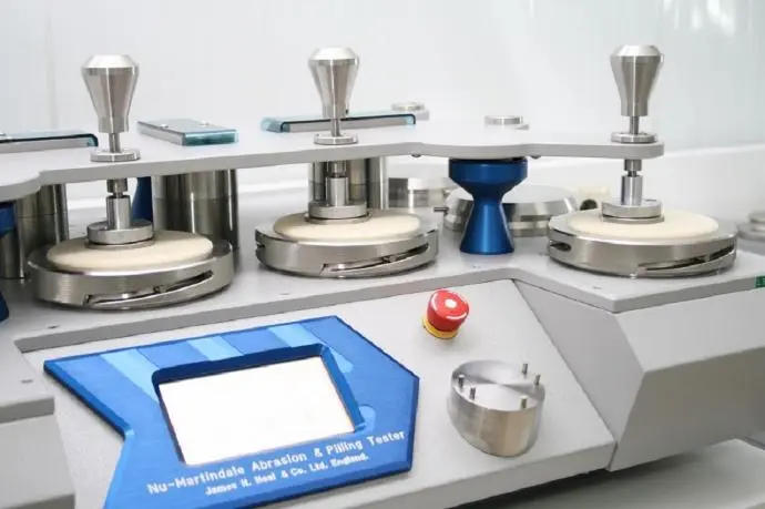 Martindale, Déchiromètre, Crockmètre, Wascator, Machine de mesure de perméabilité à l'eau et à l'air, Découpoir, Machine d'essai de solidité des teintures, boites de boulochage, ...